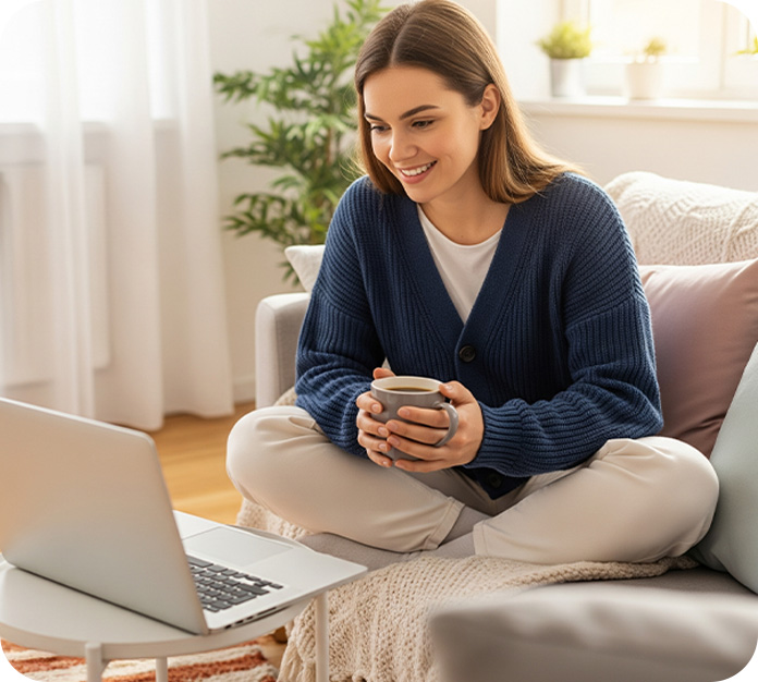 Dzięki temu możesz skupić się na tym, co naprawdę ważne – na sobie i swoim dobrostanie… Bo w psychoterapii liczy się nie miejsce, a spotkanie dwóch osób – i to spotkanie jest możliwe także online.